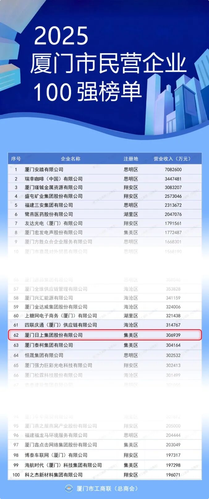 2025廈門市民營企業(yè)100強